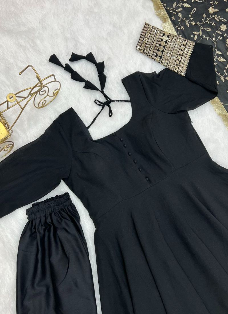 Black Color Sequence Embrodery Work Anarkali Kurta Set Black Color Sequence Embrodery Work Anarkali Kurta Set