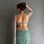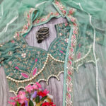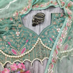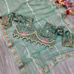 Elegant Green Embroidered Saree with Pearl and Net Detailing