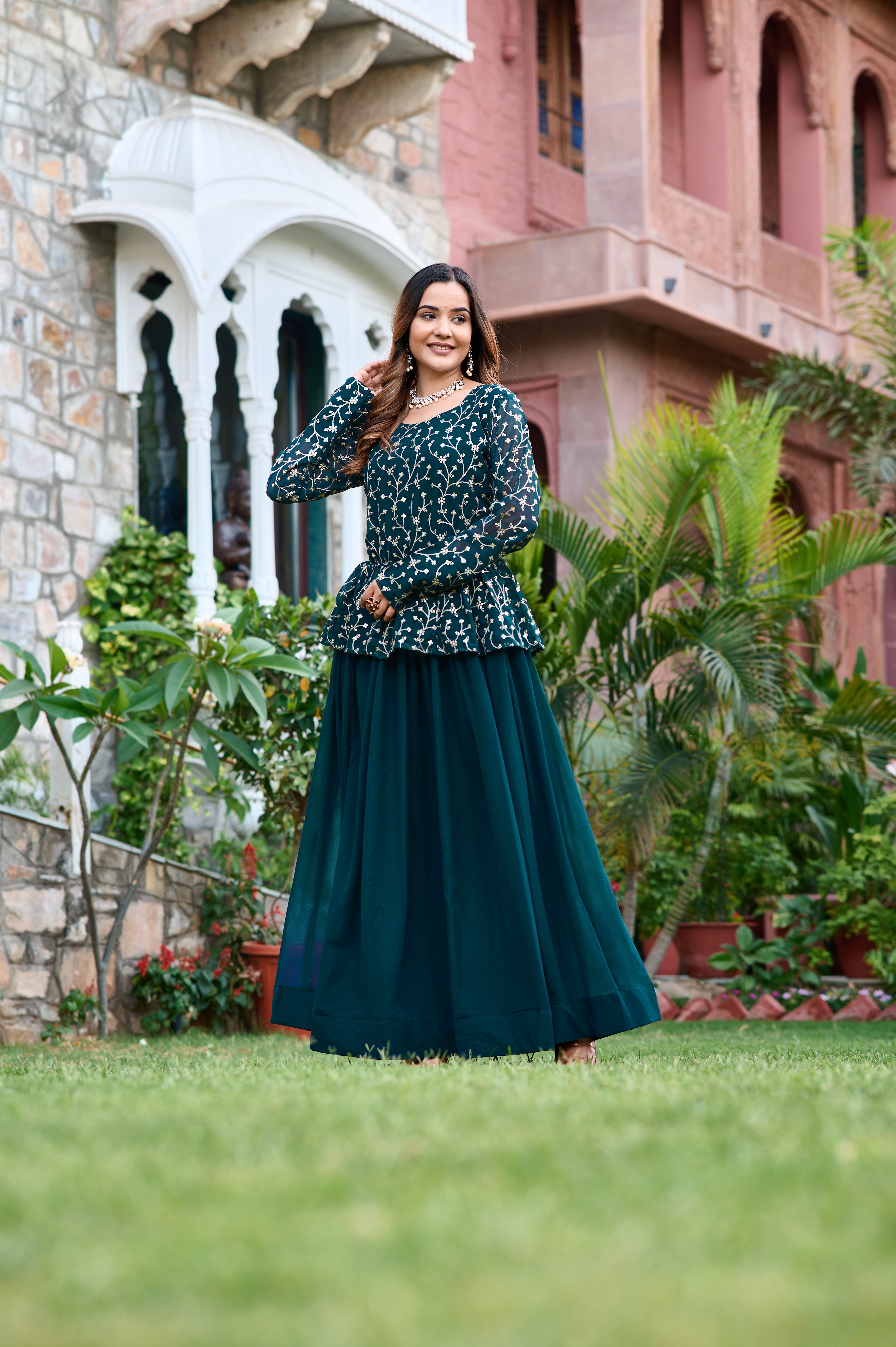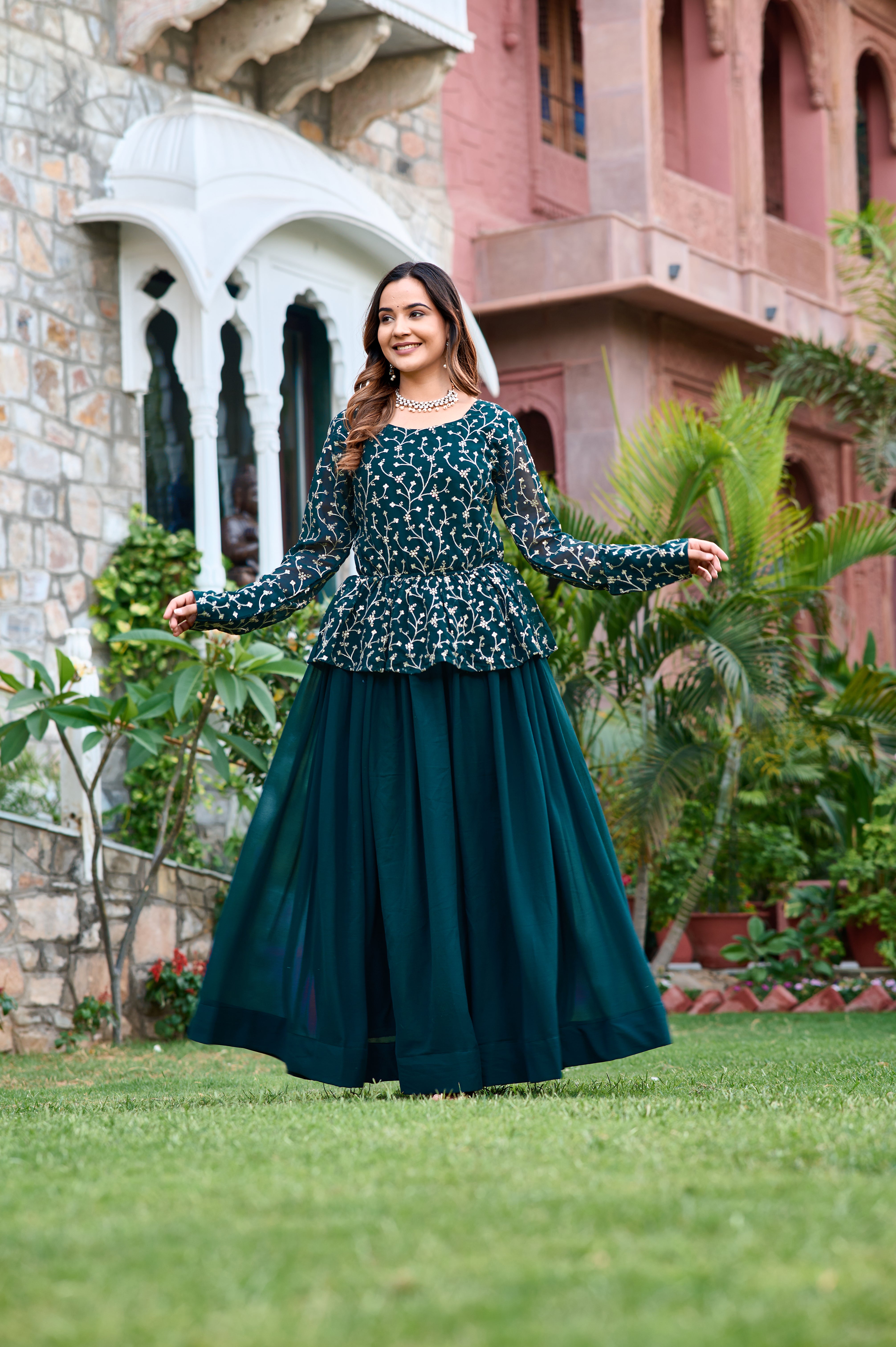 Fancy Embrodery Sequence Fox Blooming Georgette Lahenga Choli
