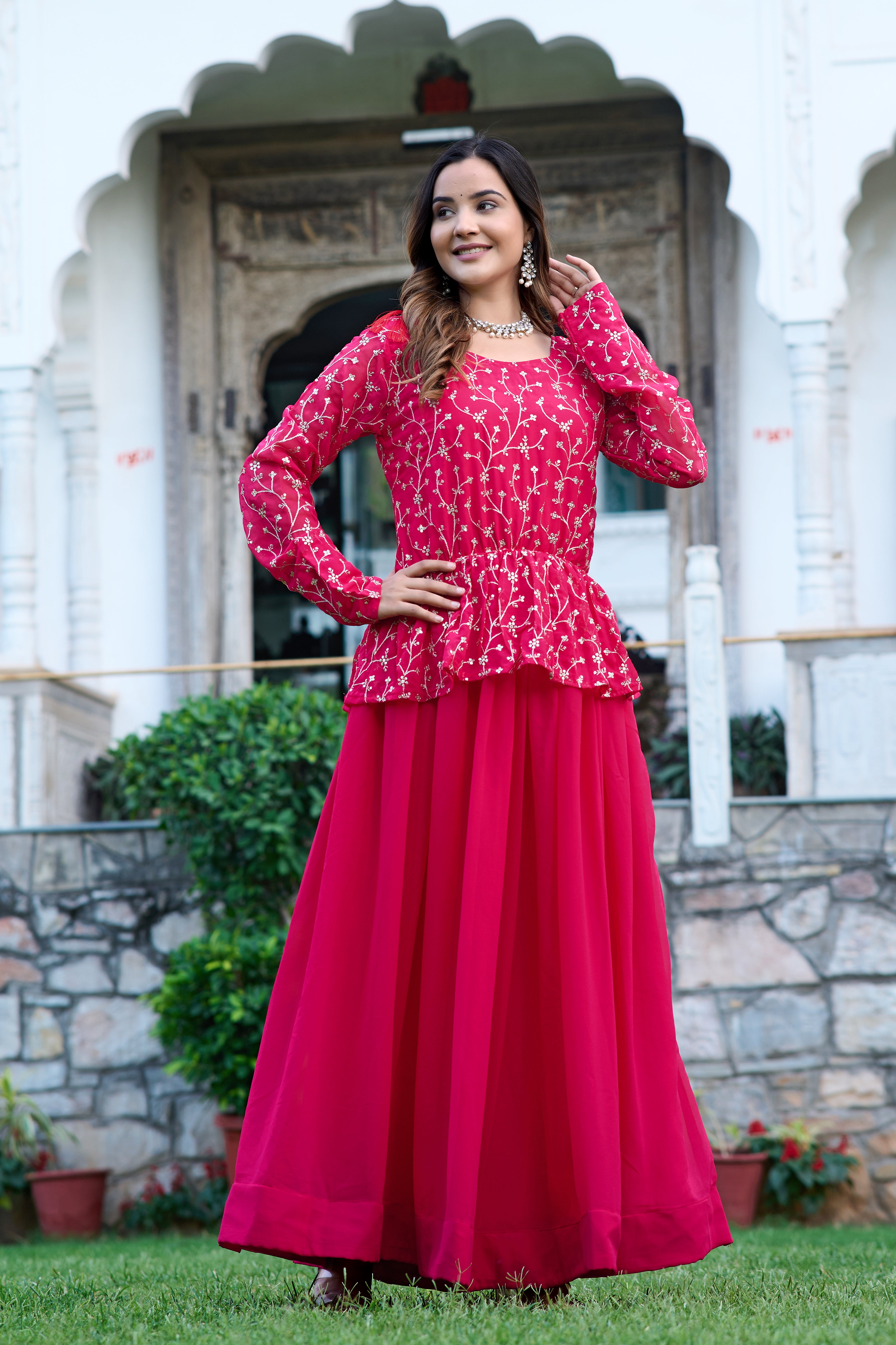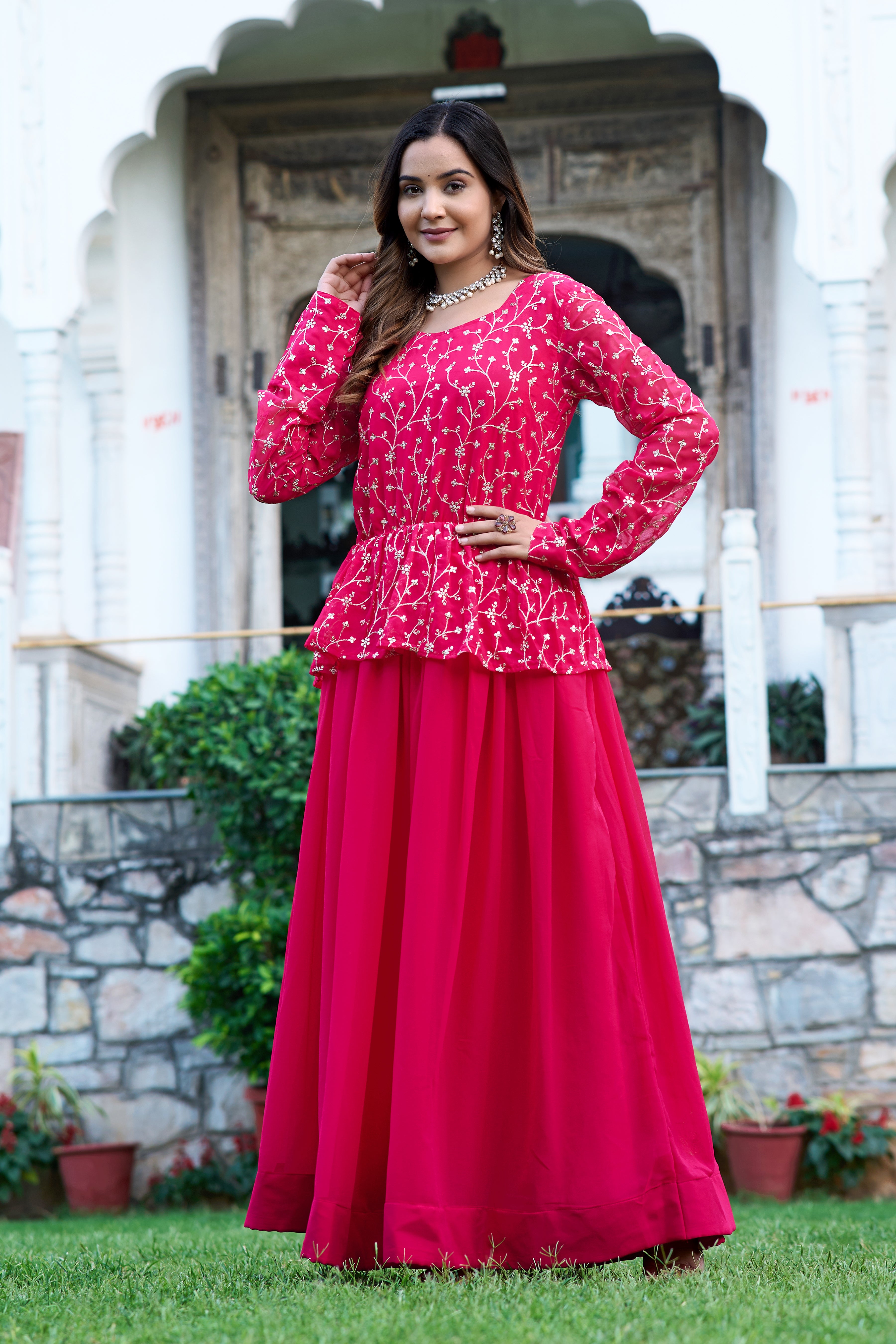 Fancy Embrodery Sequence Fox Blooming Georgette Lahenga Choli