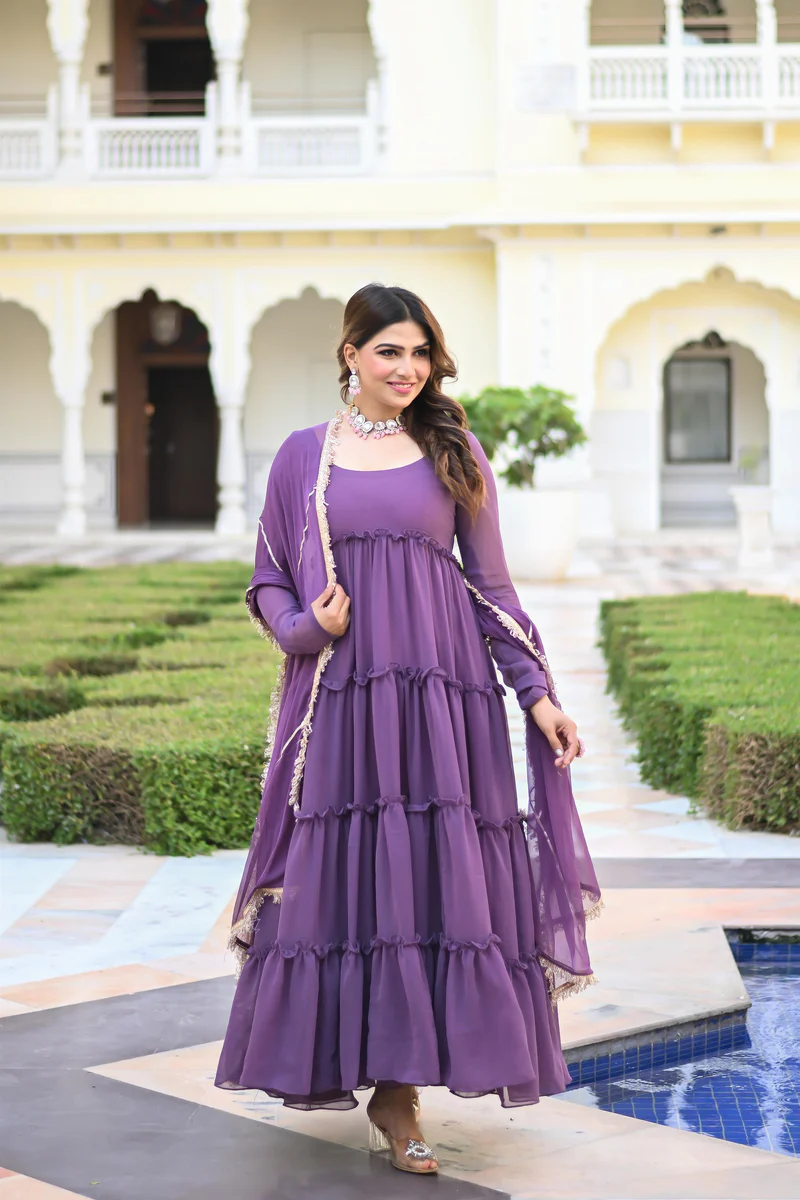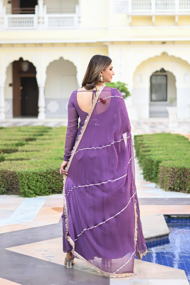 Lavender Faux Georgette Blooming Anarkali Suit Set