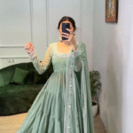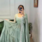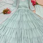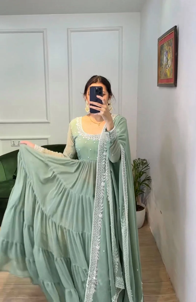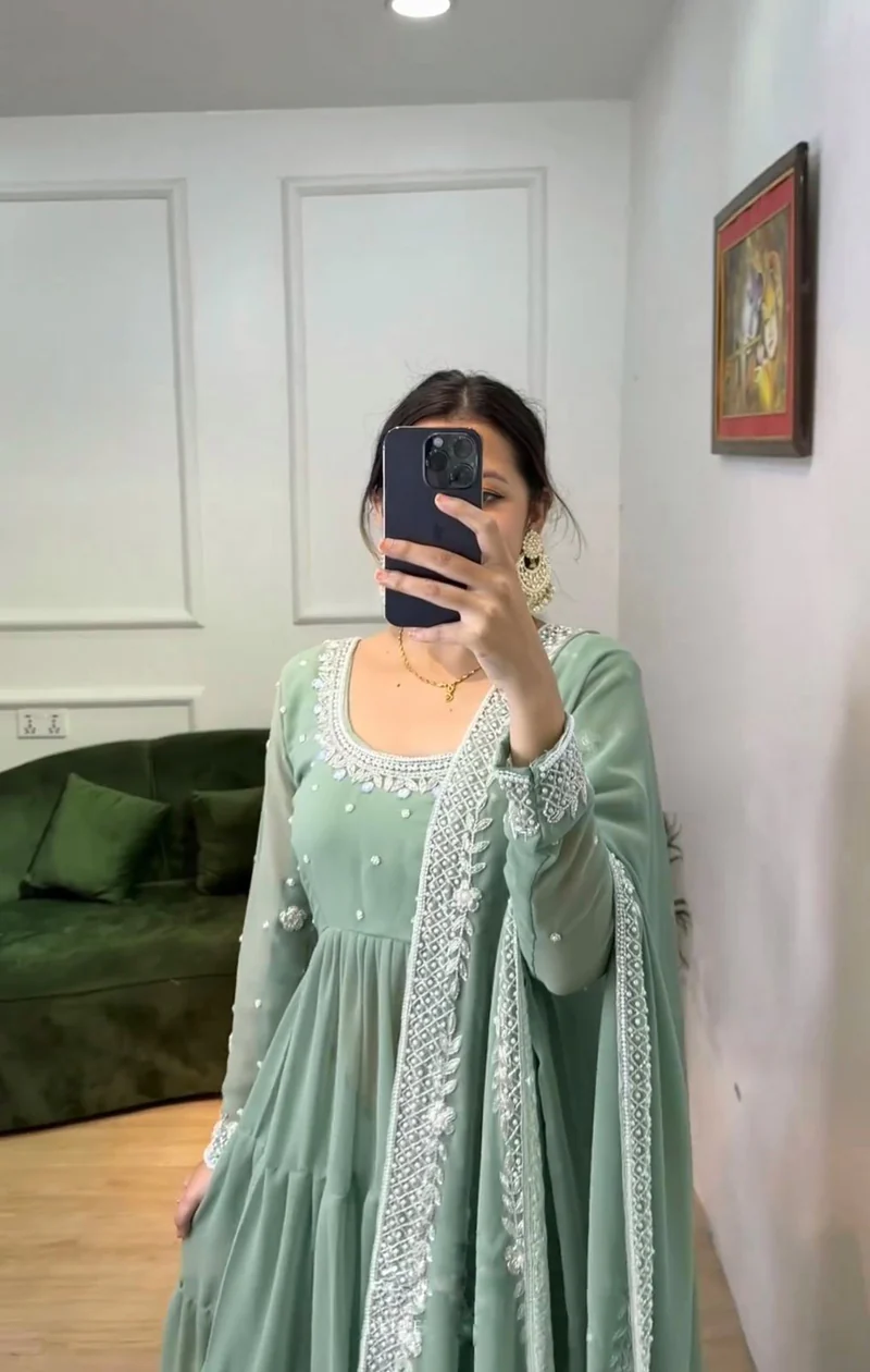 Pastel Green Georgette Anarkali Suit with Embroidered Dupatta