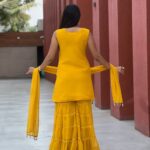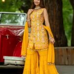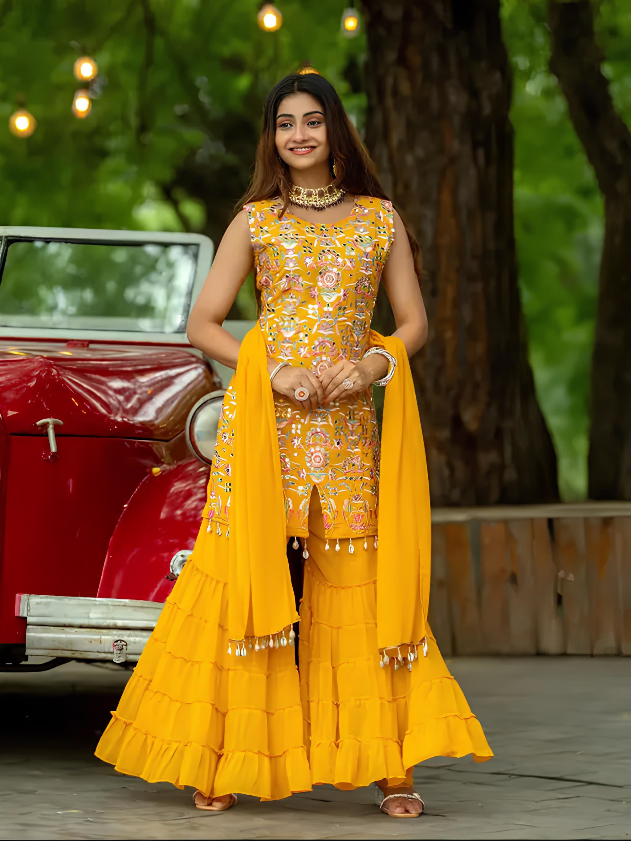 Yellow Embroidered Sharara Set for Haldi | Ruffle Palazzo Suit for Wedding Festive Wear